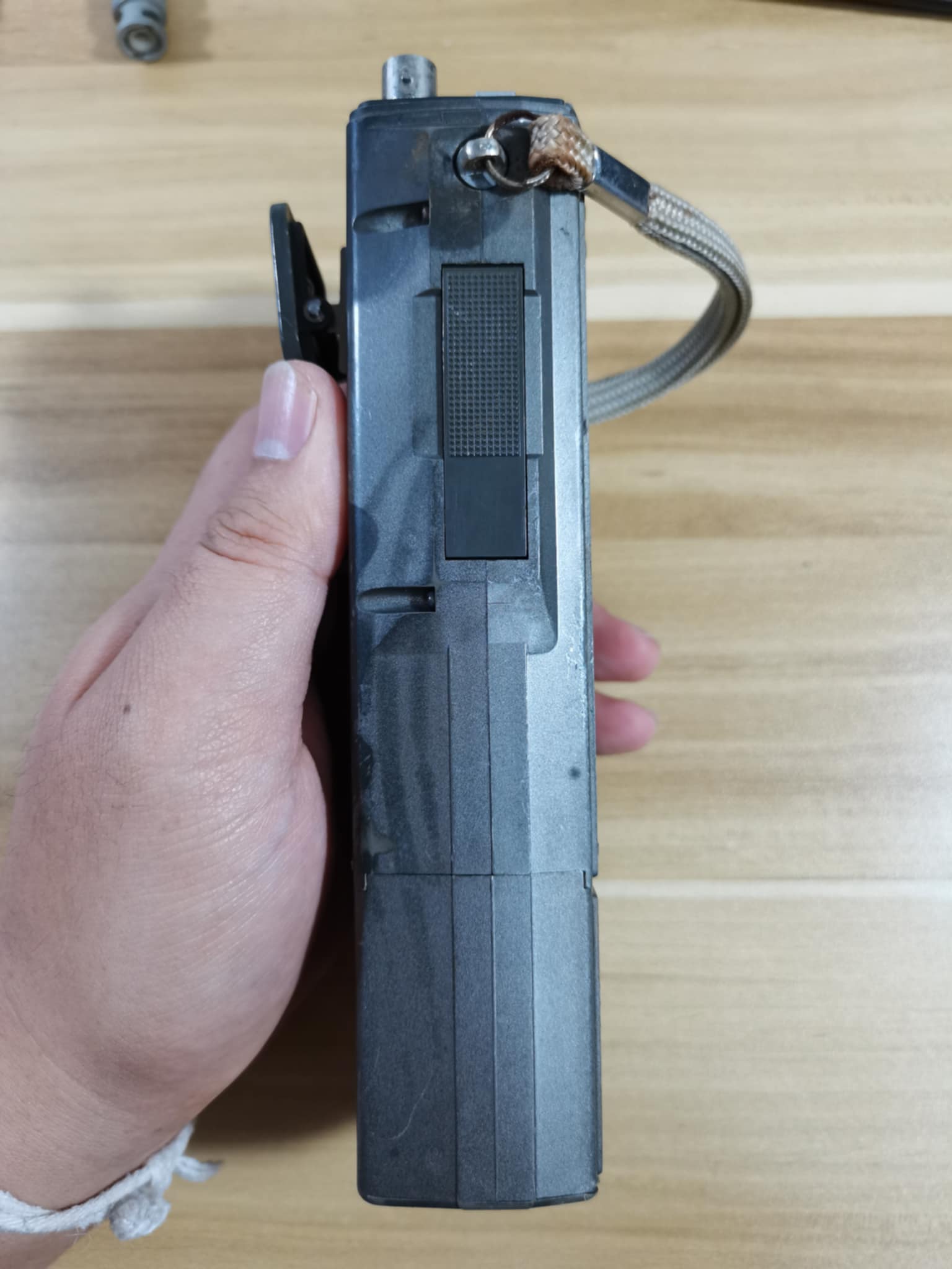 สภาพโอเคอยู่นะครับ มีรอยด่างจากอายุอานาม ตอนนี้เป็นย่านสมัครเล่นนะครับ ใช้งานพื้นฐานทั่วไปปรกติ เทสรับส่งก่ปรกติดีครับ รางถ่าน น๊อตหาย คลิบหลัง เสายางค่ายแท้ ขายราคา 1750 บาท